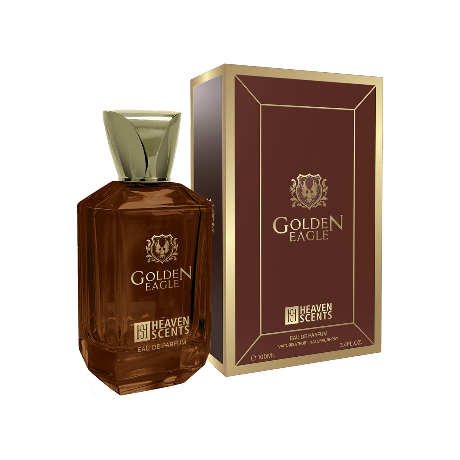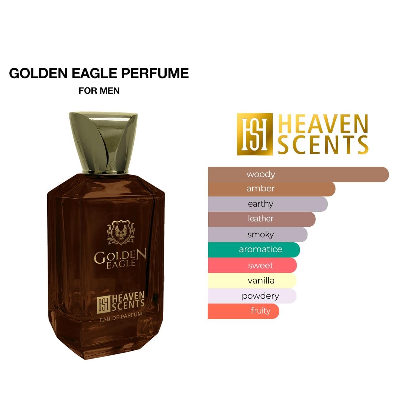 عطر جولدن إيغل من هيفن سنتس هو عطر شرقي خشبي للرجال والنساء، يتميز بمقدمة توت بري منعشة، قلب دافئ من العنبر وخشب البتولا، وقاعدة عميقة من الفيتيفر والفانيليا في زجاجة سعة 3.4 أونصة.